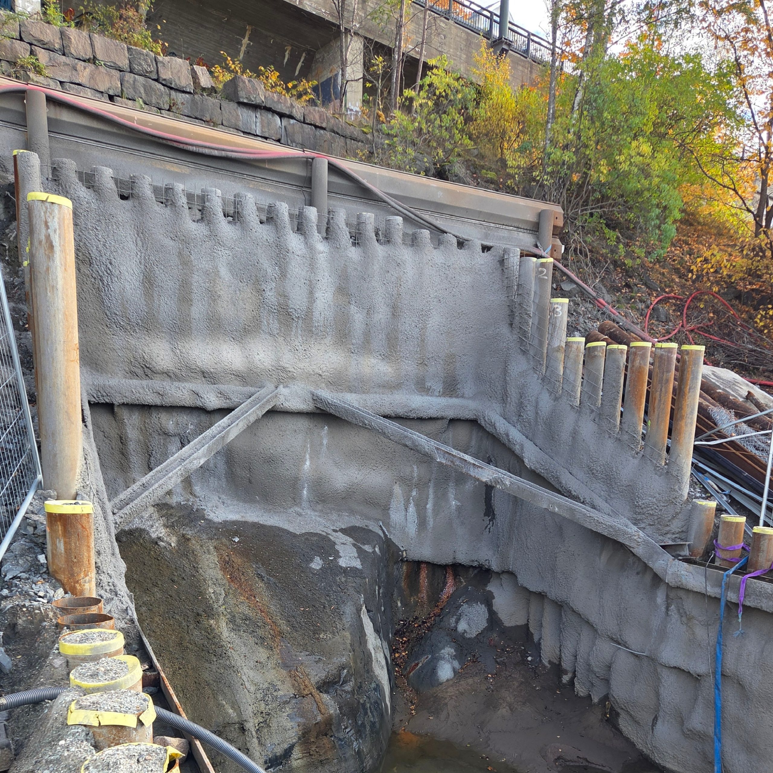 Geoteknia ble engasjert i gjennomføringsfasen og har planlagt og utført supplerende grunnundersøkelser samt kvalitetssikret og supplert produksjonsunderlaget før utførelse. Arbeidet omfattet detaljprosjektering av mottaksgrop og opprømmingsgrop i en krevende skråning nedenfor E18 Mosseveien, vurdering av grøfteløsninger mot kaiområdet og uavhengig kontroll av prosjektert boregrop ved Jomfrustien.